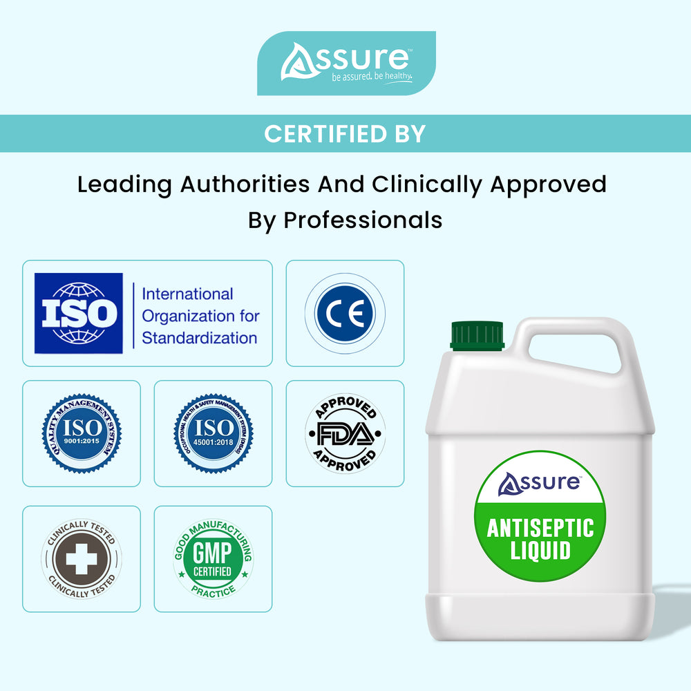Assure Antiseptic Liquid offers a powerful one-stop solution for your hygiene needs. Its advanced disinfectant formula tackles bacteria, fungi, and viruses, making it ideal for first aid, personal care, and household cleaning. Add it to your bathwater for a refreshing cleanse or dilute it for use in floor cleaning solutions.