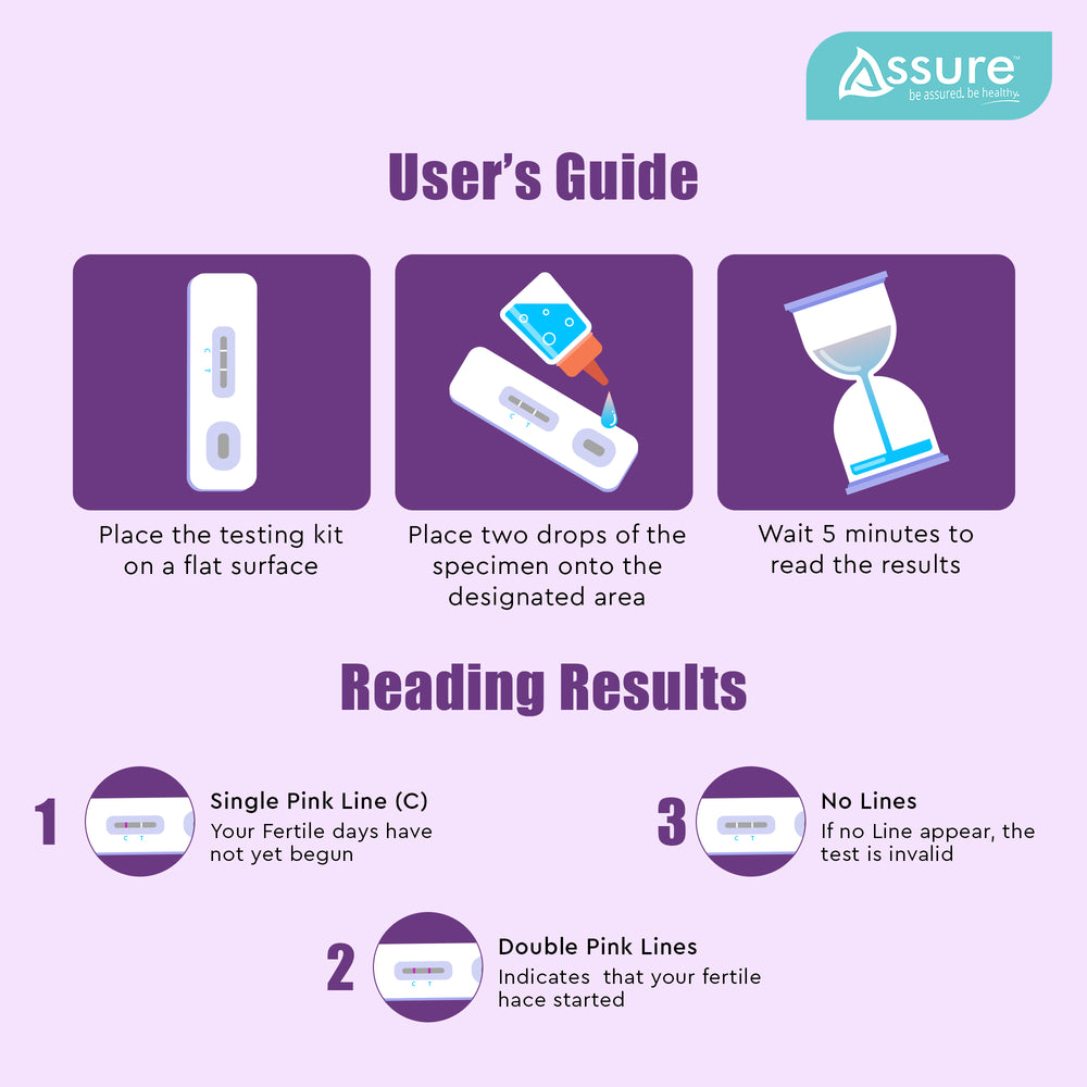 Assure Early Ovulation Kit is a one-step testing method meticulously designed to assist women in monitoring their reproductive cycles and determining the best time for conception. Our device is designed to be simple and intuitive, allowing for seamless tracking of ovulation trends.