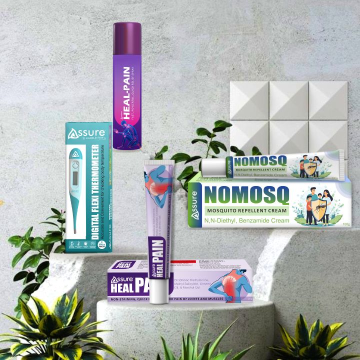 Be prepared for everyday health and wellness needs with the Assure Smart Health & Relief Combo โ a compact and effective 3-in-1 care pack designed for quick pain relief, accurate temperature monitoring, and outdoor protection. This essential combo includes: