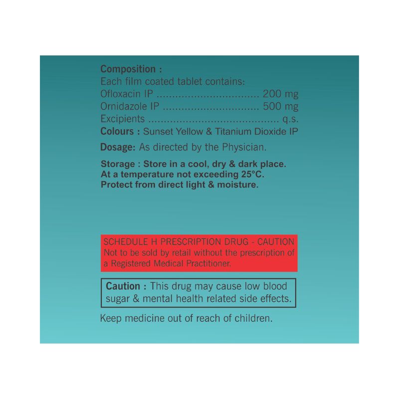 Ofloxacin (200mg) – A broad-spectrum fluoroquinolone antibiotic that inhibits bacterial DNA replication, effectively treating bacterial infections in the respiratory, urinary, and gastrointestinal tracts.
