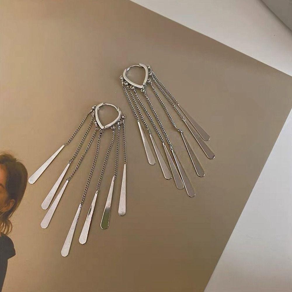 Grace meets drama in these sterling silver tassel drop earrings. Designed with cascading chains and sleek bar accents, they sway beautifully with every movement—making them the perfect blend of elegance and boldness. Lightweight yet striking, these earrings are crafted to turn every glance into admiration.
