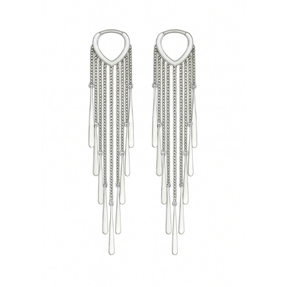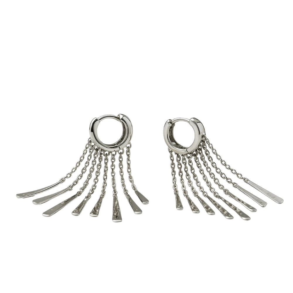 Designed with cascading chain tassels, these long silver earrings bring a bold, elegant flow to your style. Their sleek, modern look makes them a stunning choice for parties, special occasions, or statement fashion moments.