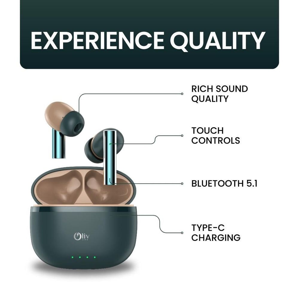 Experience premium wireless audio with these sleek and stylish earbuds from Oliv Life. The elegant white design features chrome accents and a compact charging case for both protection and power on the go. These wireless earbuds deliver crystal-clear sound while maintaining a comfortable, secure fit for extended listening sessions. The charging case displays convenient LED indicators to monitor battery status, while the earbuds themselves feature intuitive touch controls for easy operation. Perfect for daily commutes, workouts, or casual listening, these earbuds seamlessly pair with your devices for a truly wireless audio experience. The ergonomic design ensures they stay firmly in place, while the minimalist aesthetic complements any style. Each earbud has a small LED indicator to show connection status, making it simple to know when they're ready to use.