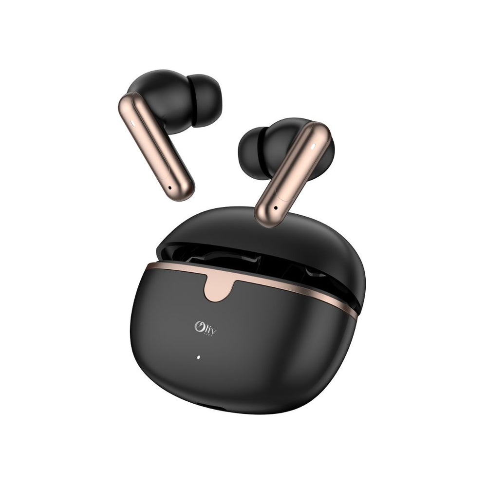 Experience premium wireless audio with these sleek and stylish earbuds from Oliv Life. The elegant white design features chrome accents and a compact charging case for both protection and power on the go. These wireless earbuds deliver crystal-clear sound while maintaining a comfortable, secure fit for extended listening sessions. The charging case displays convenient LED indicators to monitor battery status, while the earbuds themselves feature intuitive touch controls for easy operation. Perfect for daily commutes, workouts, or casual listening, these earbuds seamlessly pair with your devices for a truly wireless audio experience. The ergonomic design ensures they stay firmly in place, while the minimalist aesthetic complements any style. Each earbud has a small LED indicator to show connection status, making it simple to know when they're ready to use.