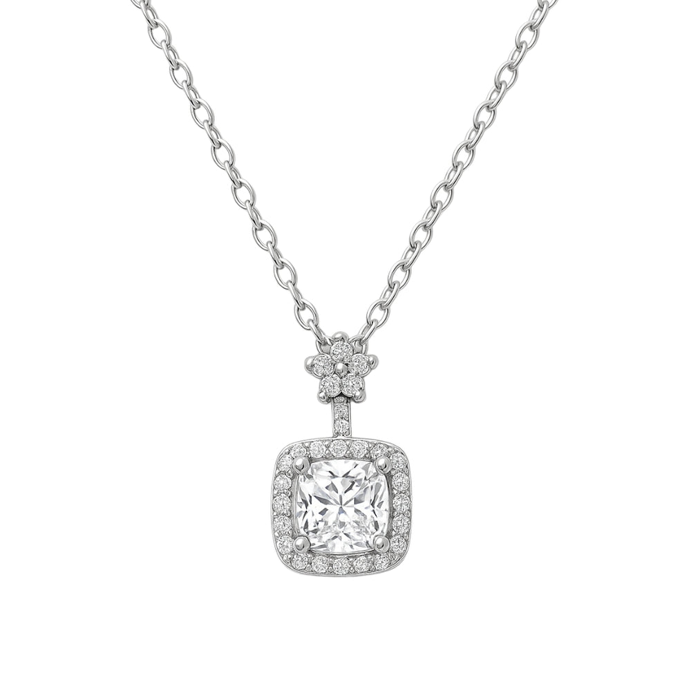 A delicate silver pendant featuring a sparkling CZ–studded heart outline that adds a soft, romantic shin