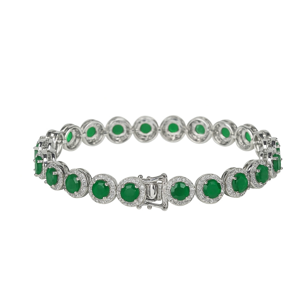 Crafted in pure silver, this elegant bracelet features a continuous row of sparkling heart-cut zircons that shine with every movement. Perfect for gifting, celebrations, or adding a romantic sparkle to your everyday style.