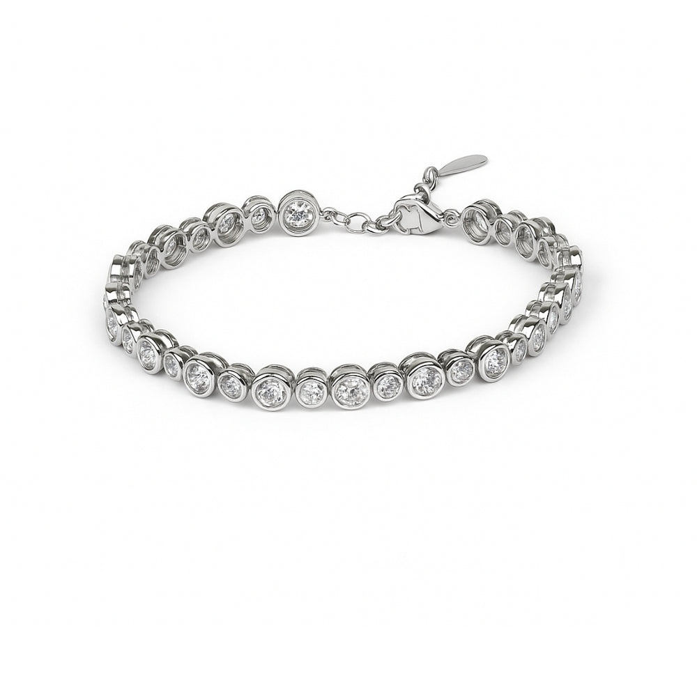 Crafted in pure silver, this elegant bracelet features a continuous row of sparkling heart-cut zircons that shine with every movement. Perfect for gifting, celebrations, or adding a romantic sparkle to your everyday style.
