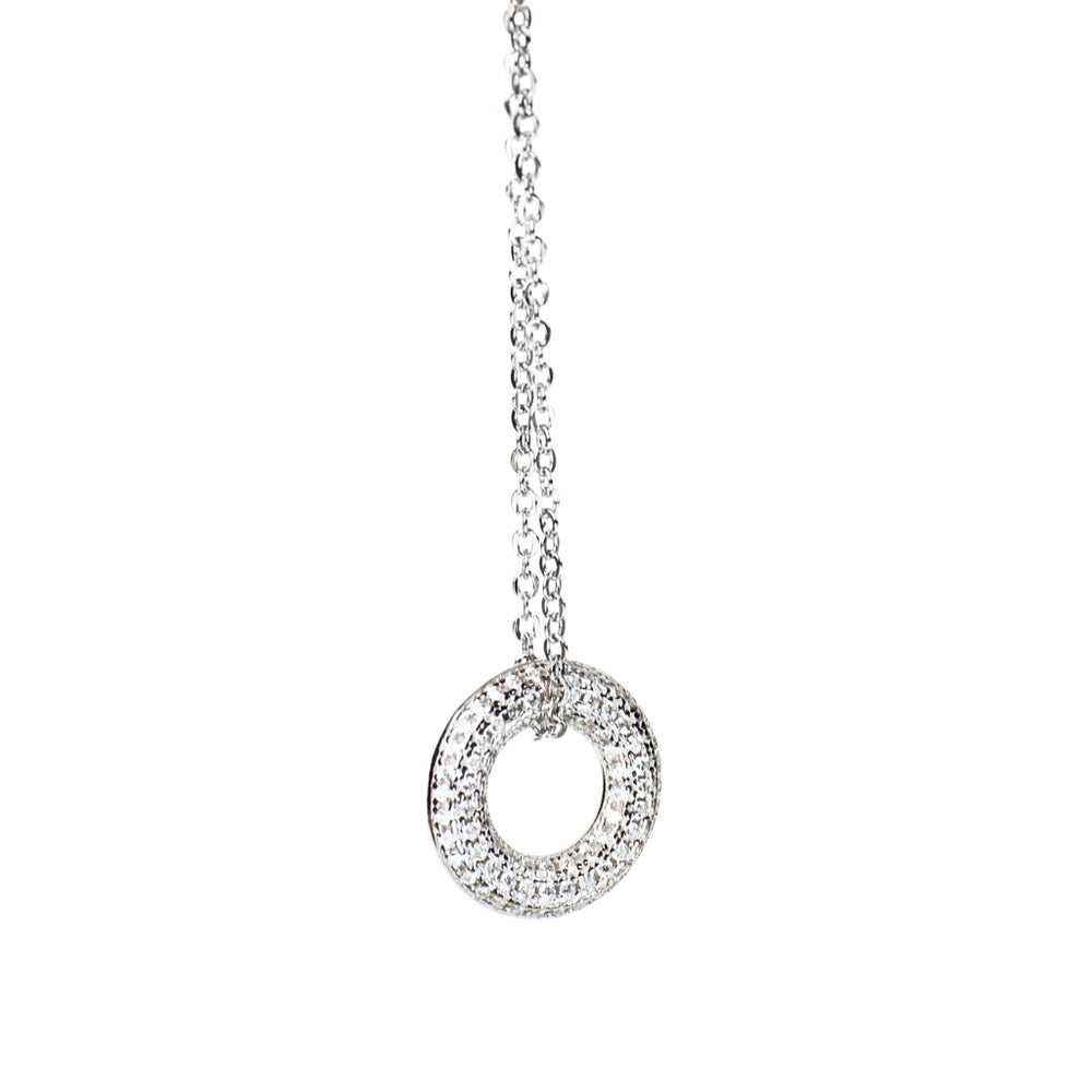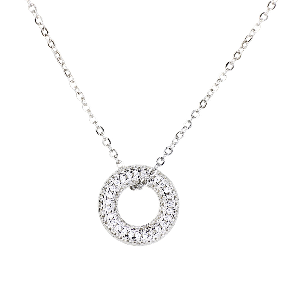 This elegant silver necklace features a dazzling oval-shaped pendant encrusted with shimmering stones. Perfect for both casual and formal wear, its timeless design adds a touch of sophistication and sparkle to any look.
