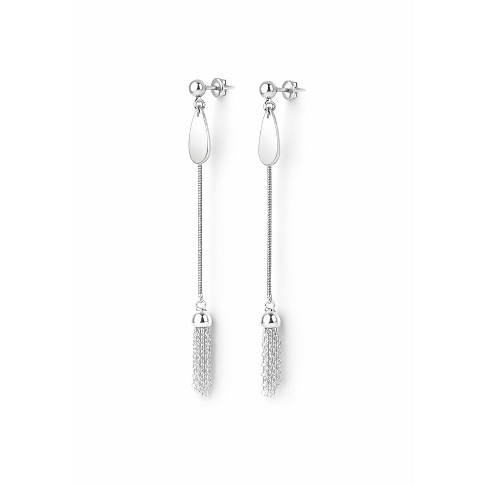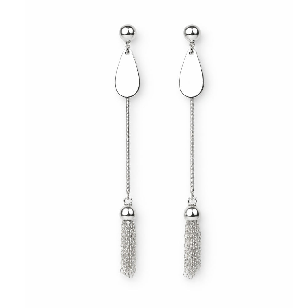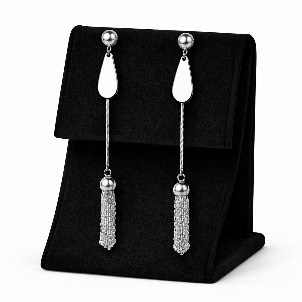 Graceful and modern, these silver tassel drop earrings feature sleek metallic chains that sway beautifully with every move. Crafted for elegance and versatility — perfect for both day and night looks.